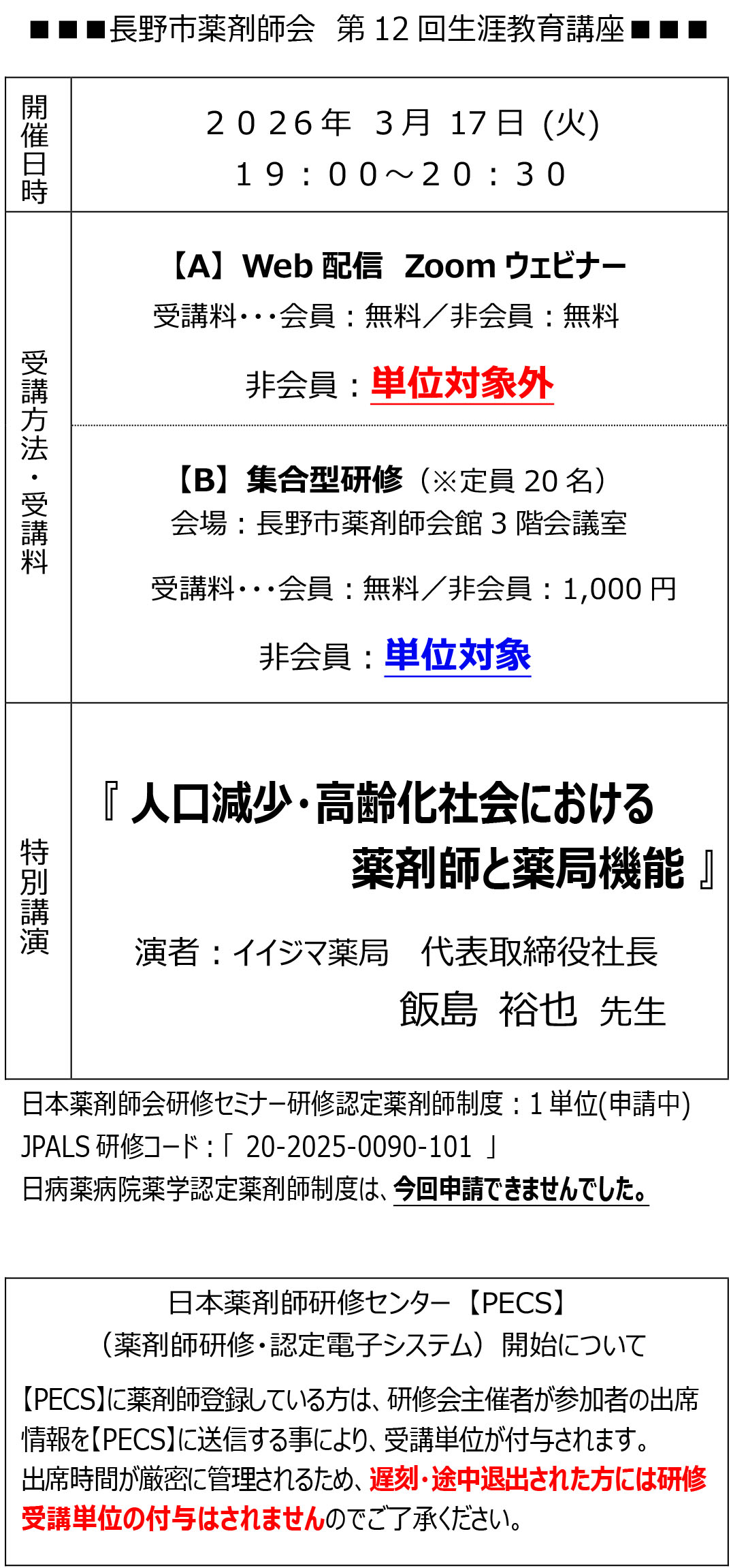 3月 17日 第12回生涯教育講座 申込みはこちら